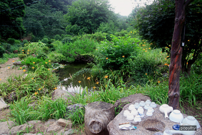 한 그루 나무 아래로 돌의자와 다기가 놓여 있는 돌차탁이 있는데 이 또한 멋스럽다.