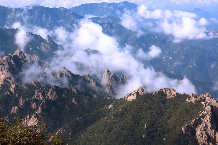 구름이 휘감은 공룡능선의 모습은 마치 신선의 영역을 보는 듯한 초절정의 아름다운 경치를 보여준다.
