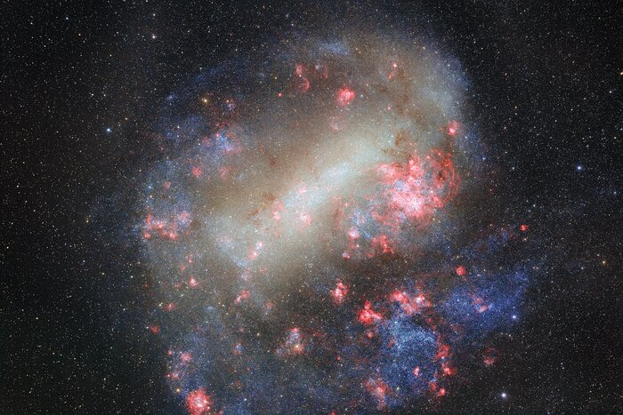 주요 천체 : 국부 은하군에서 가장 활발한 별 형성 영역인 타란툴라 성운(Tarantula Nebula, NGC 2070)을 포함하고 있음